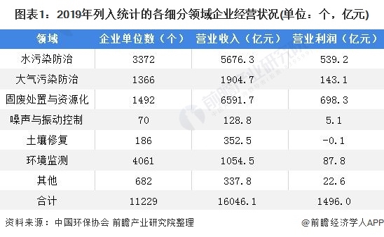 在我國(guó)環(huán)保產(chǎn)業(yè)企業(yè)中,水污染防治、環(huán)境監(jiān)測(cè)領(lǐng)域企業(yè)數(shù)量占比較高;水污染防治、固廢處置與資源化、大氣污染防治3個(gè)領(lǐng)域企業(yè)的營(yíng)業(yè)收入占比居前列,3個(gè)領(lǐng)域企業(yè)營(yíng)業(yè)收入之和占比高達(dá)88.4%。