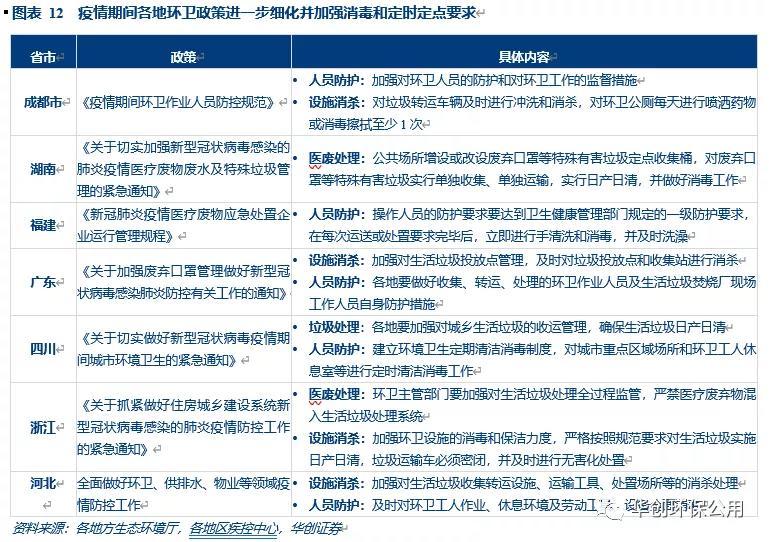 隨著疫苗接種率的提高,新冠疫情在國內已經得到了有效控制,但局部疫情仍然頻發,引起社會公眾對于城市消毒和臟亂差管理問題的廣泛關注,全國各省市陸續出臺一系列通知和規范文件,明確了環衛服務領域應對新型冠狀病毒肺炎疫情的工作方案。各項政策文件分別在醫廢處理、日常垃圾清理、環衛設施消殺、公共環境消毒和環衛人員防護等領域提出了具體的要求,為社會各界應對新冠疫情提供了指導。對于環衛工作的高標準、精細化、專業化的要求,加大了對市政環衛部門工作的挑戰。伴隨環衛服務的需求釋放,環衛服務市場化進程有望進一步加速。