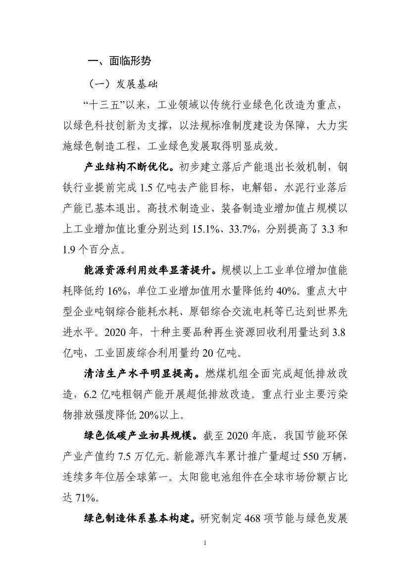 工業和信息化部關于印發《“十四五”工業綠色發展規劃》的通知