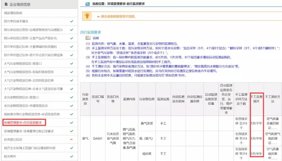 排污單位應根據排污許可證中的“自行監測要求”確定的監測內容、頻次開展自行監測。具體在排污許可證“環境管理要求-自行監測要求”中查看。
